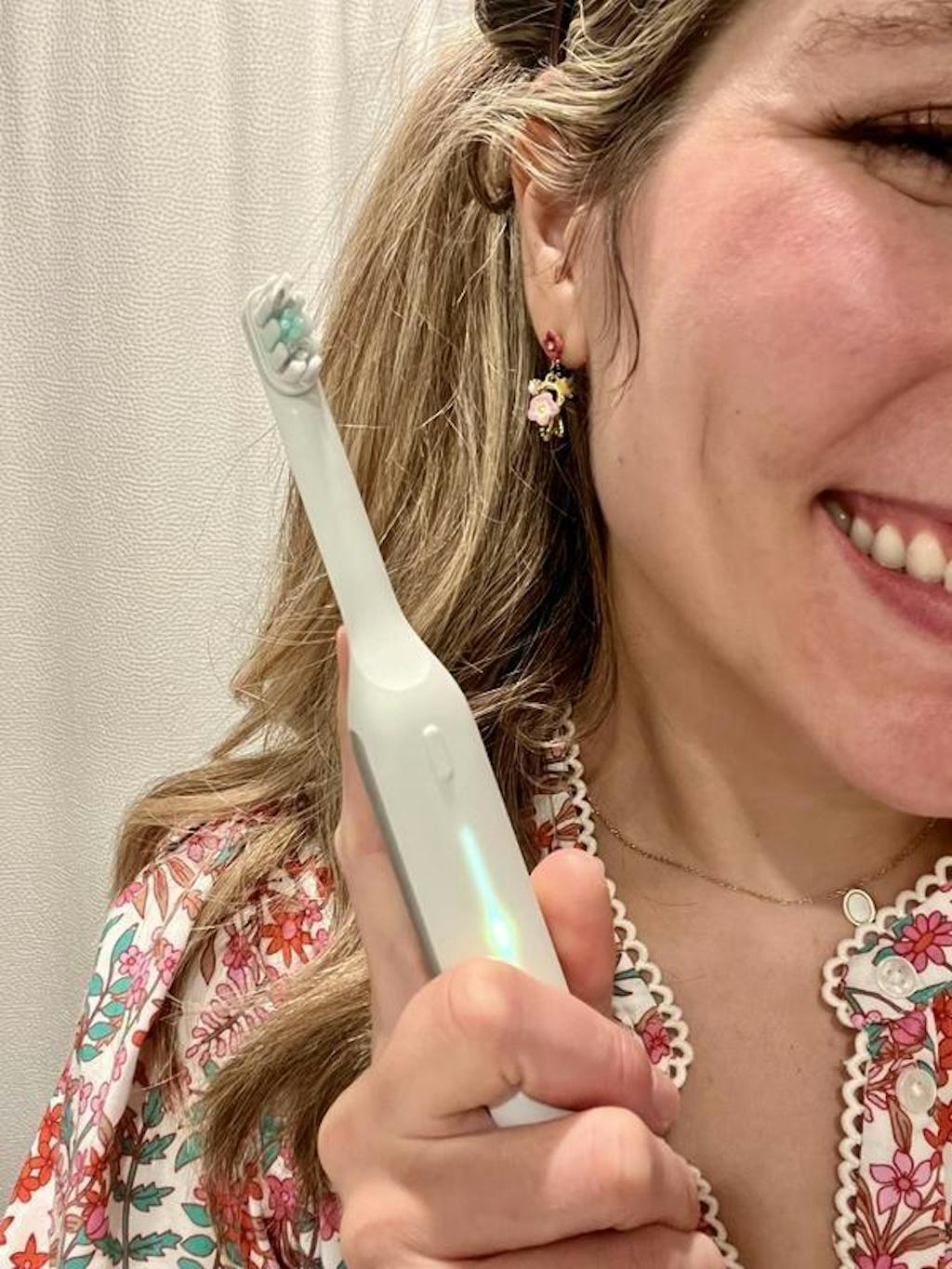 De naadloze siliconen handgreep van de Hero Sonic Brush is gemakkelijk schoon te maken en voelt zacht aan (en is zacht voor de tanden).
